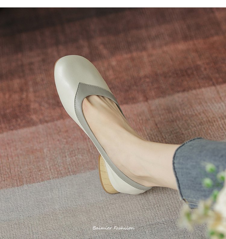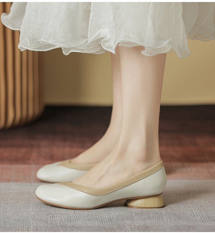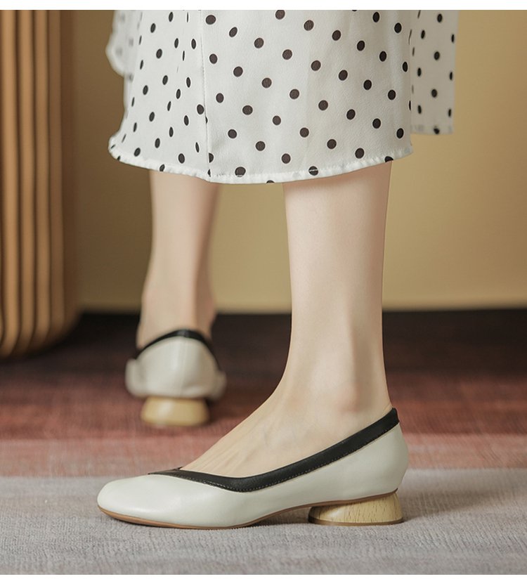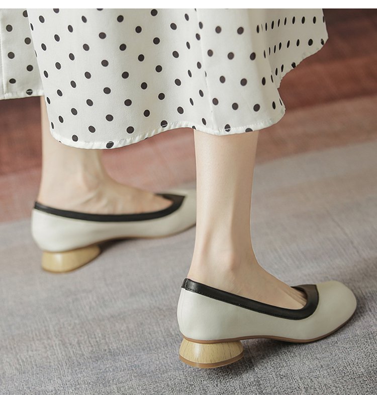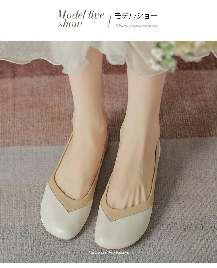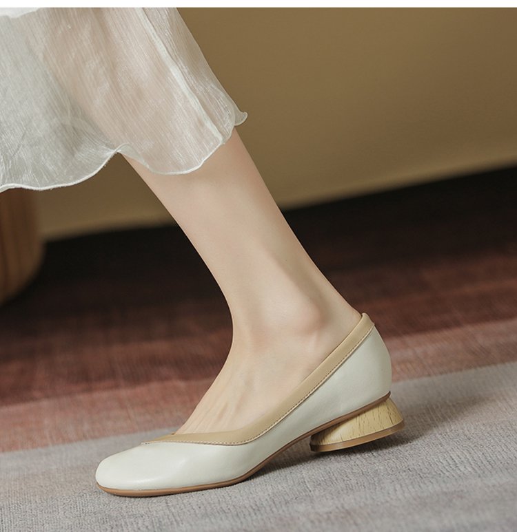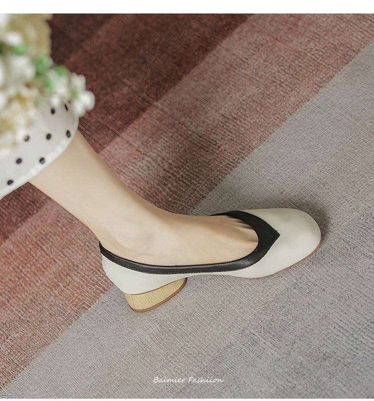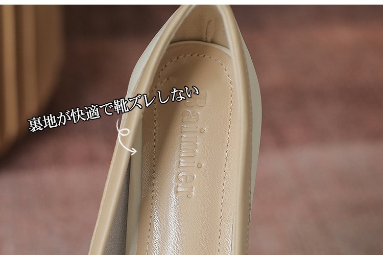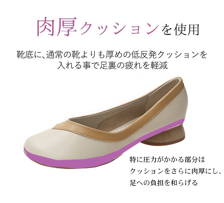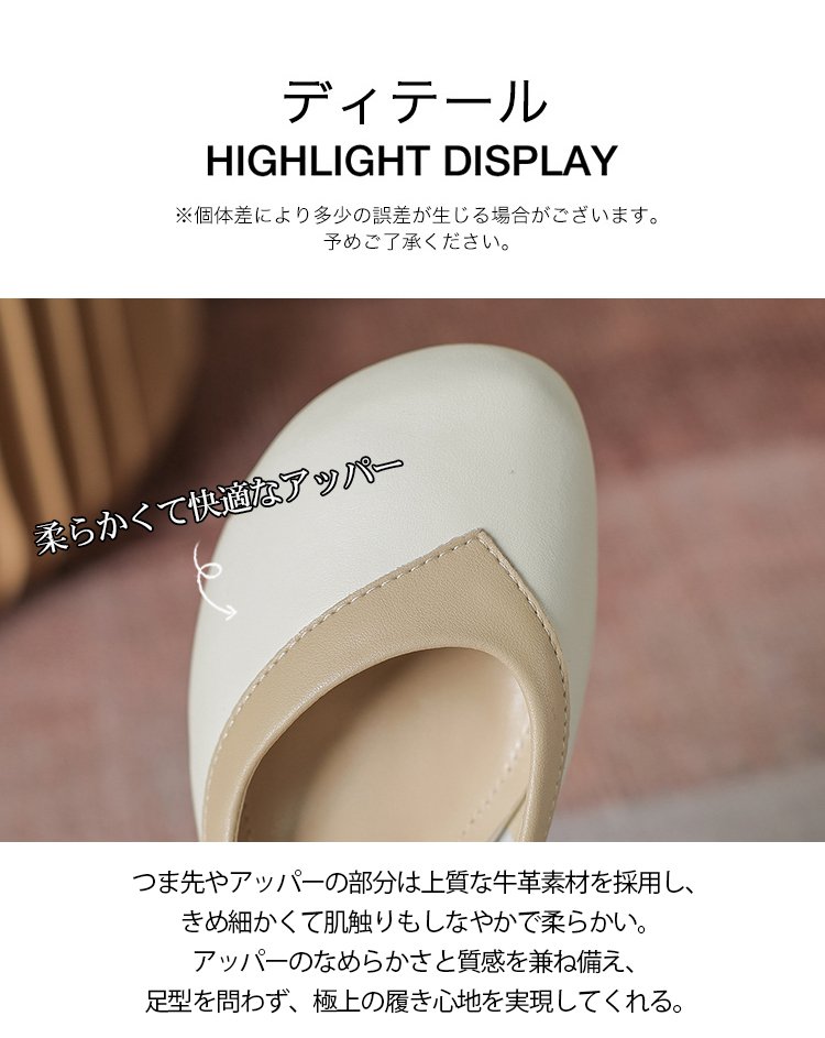 【バイカラーパンプス】本革、太ヒール、3cm身長アップ、クッション入りインソール、幅広デザイン、滑り止め