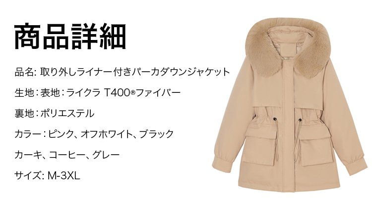 取り外しライナー付きパーカダウンジャケット